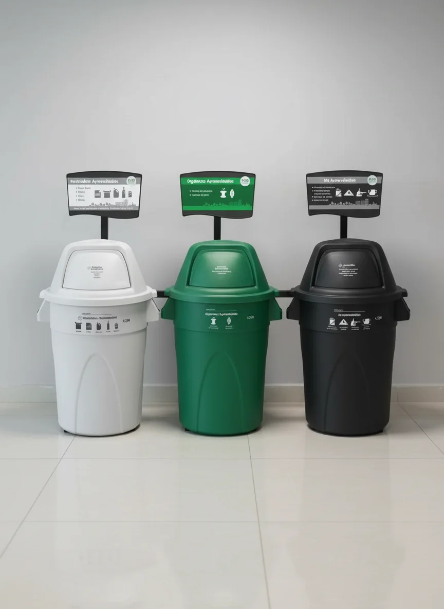 - Contenedores en puestos estratégicos: cafeterías, pasillos, zonas comunes.